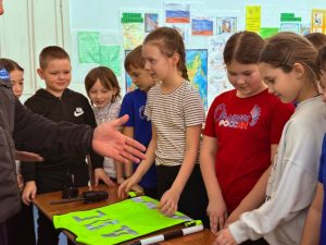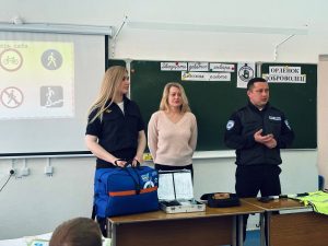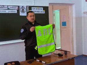 Начальник отделения капитан полиции Рамиль Рафиков продемонстрировал ученикам специальные средства, применяемые сотрудниками Госавтоинспекции в повседневной работе. Учащимся были представлены алкотестер, предназначенный для выявления наличия алкоголя в организме водителей, прибор тоник, медицинский комплект первой помощи, светоотражающий жилет, регулировочный жезл и носимый видеорегистратор модели «Дозор».